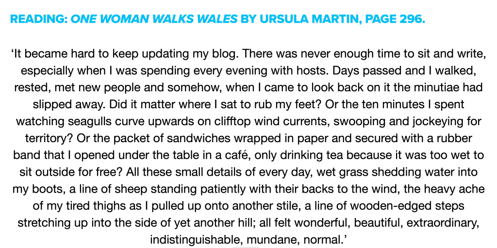 One of the readings Lorna chose was about Pembrokeshire, by Ursula Martin, who is coming to Chapter One on April 7th, as she walks Wales.