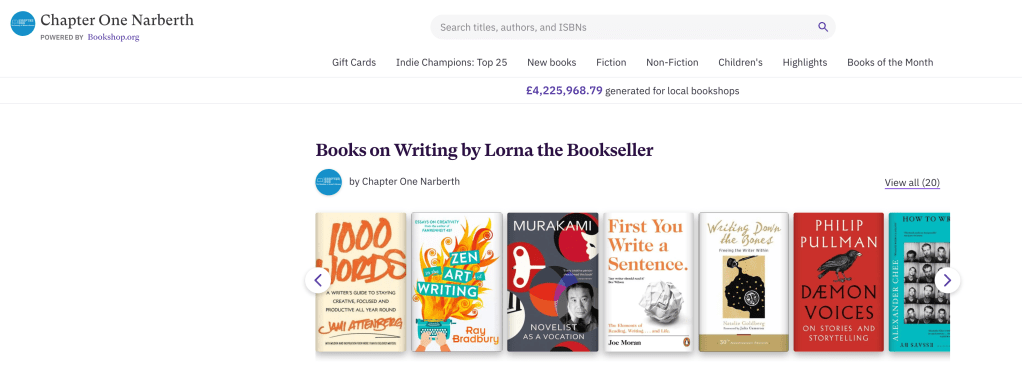 To support these workshops, Lorna has created a Books On Writing section in our Chapter One Narberth online bookshop.org which is full of tempting titles.